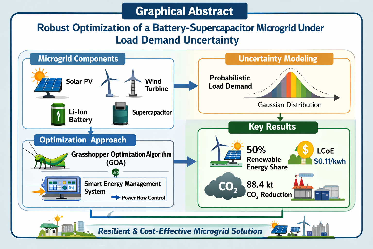 I’m excited to share that our latest research paper, “Robust Optimization of a Battery-Supercapacitor Microgrid Under Load Demand Uncertainty,” has been officially published in the journal Next Energy (Elsevier).